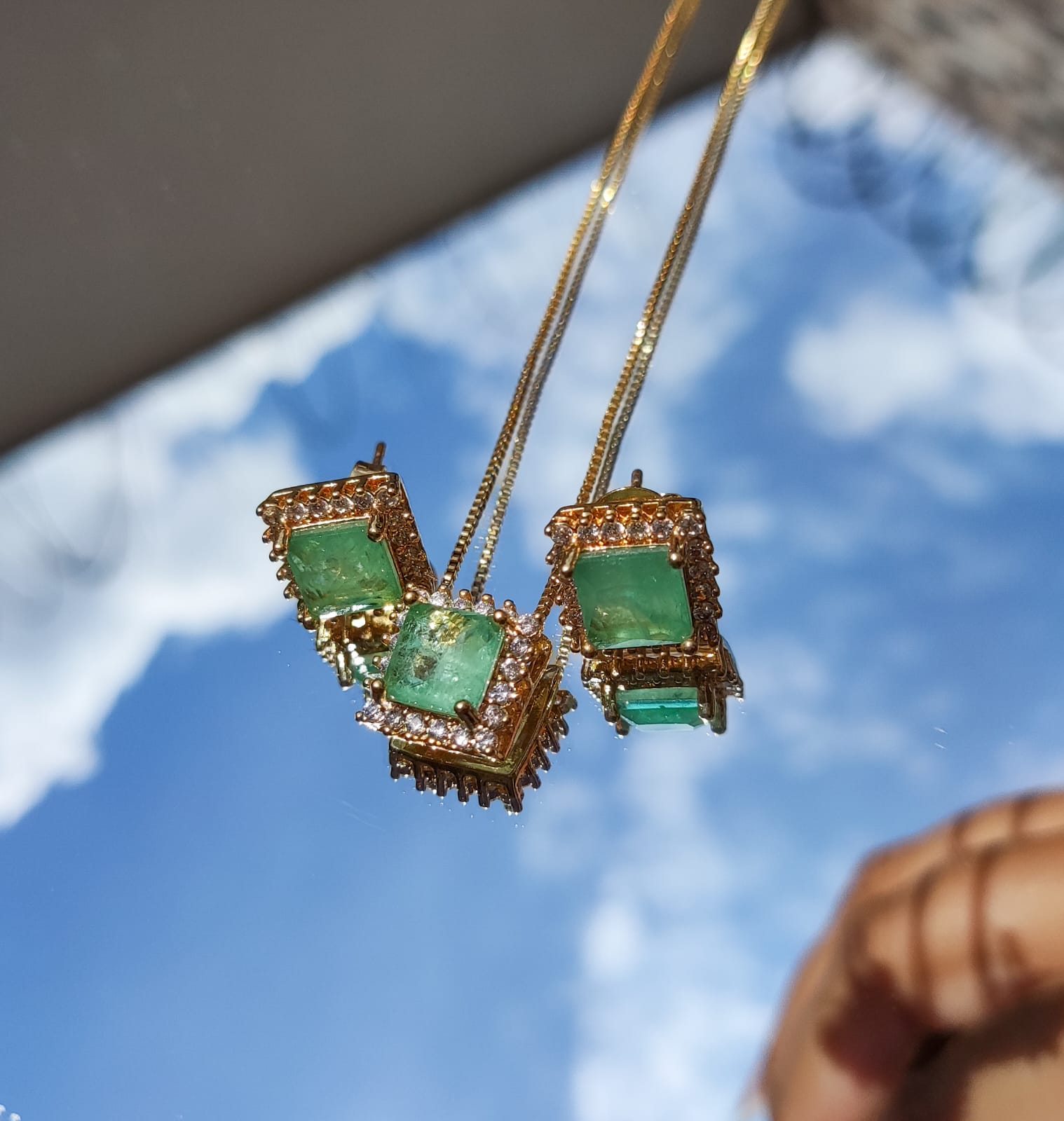 Conjunto pedra fusion turmalina e lateral cravejada com zircônias .