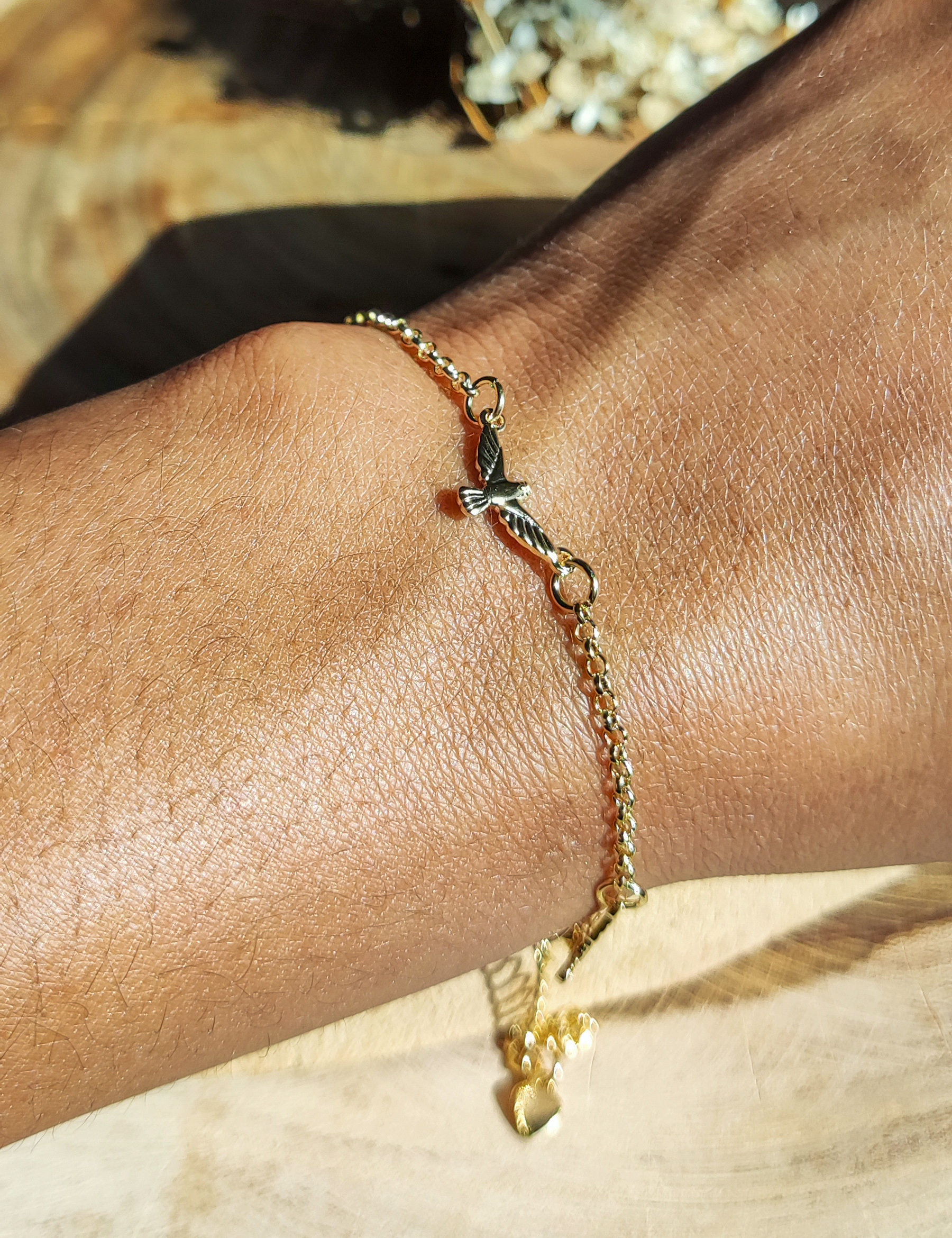 Pulseira Esírito Santo,fio elo 040, composta por pingentes pombinhas.