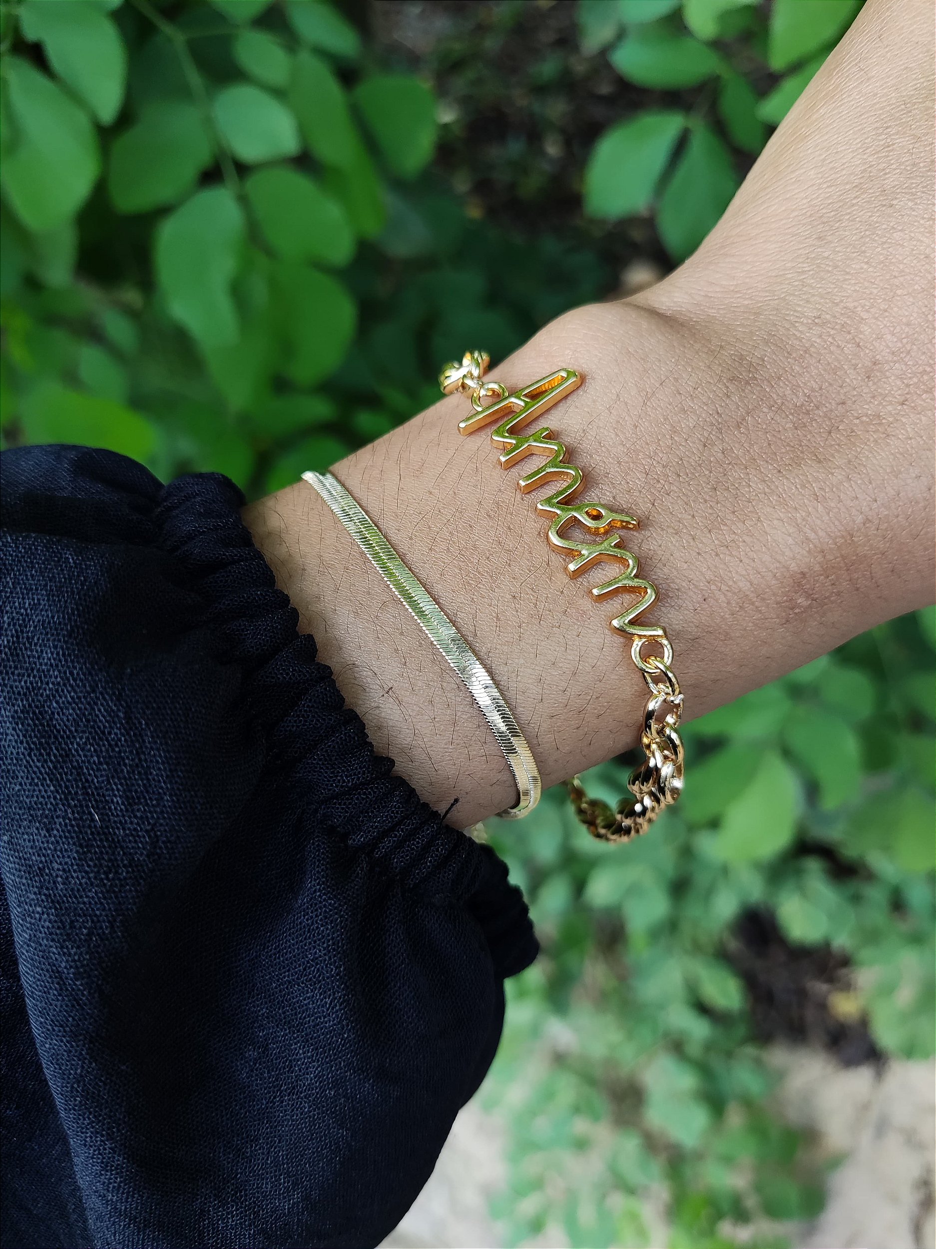 Correntaria banho em ouro 18k , com elos trançados e placa com escrita amém .