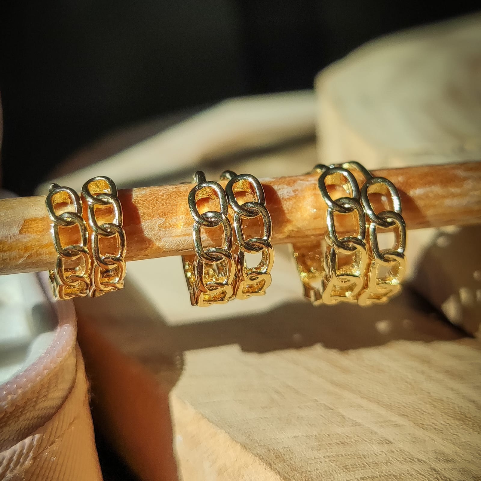 Trio que acompannha o par de 3 brincos , estilo correntaria .